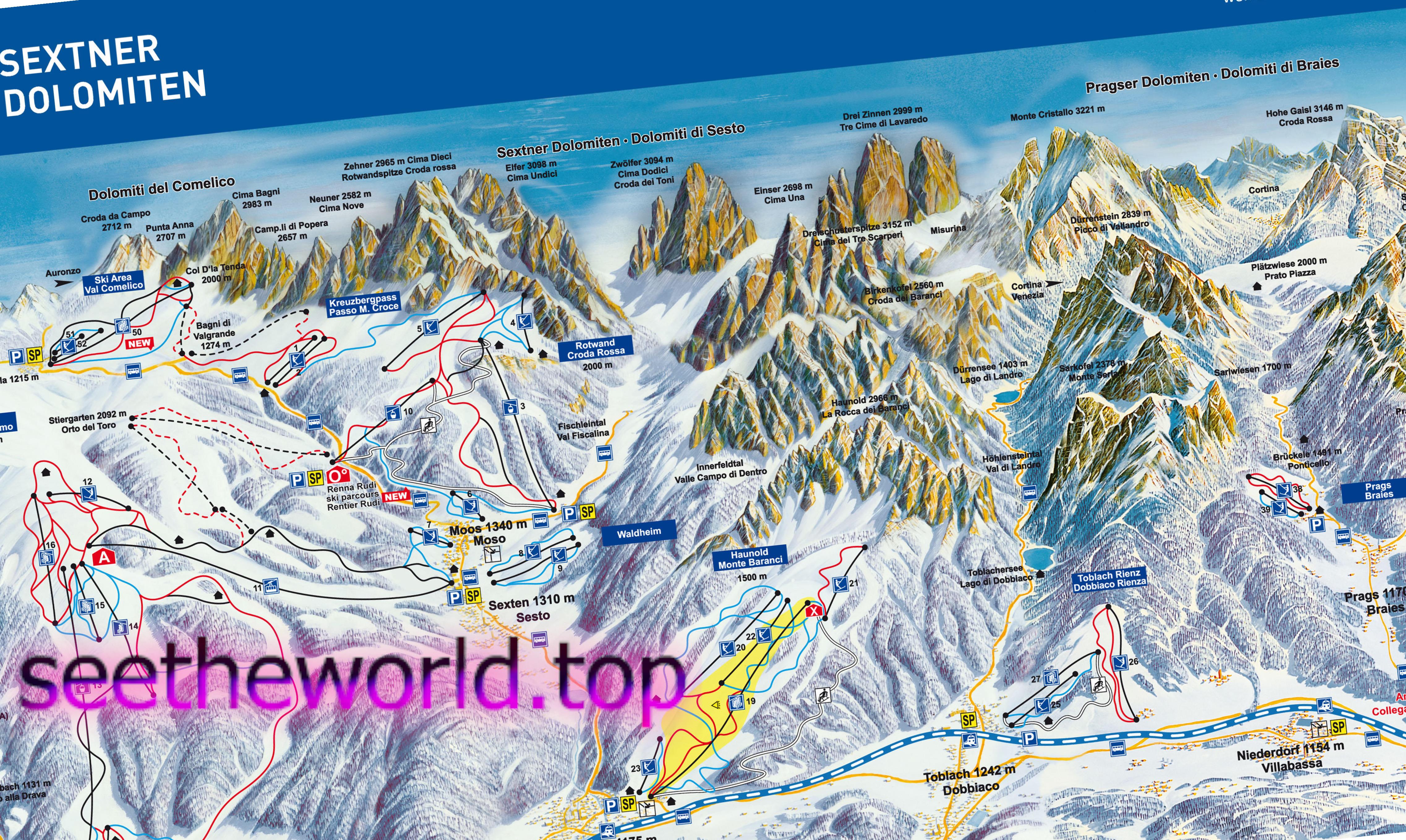 - Маршрут Джиро-тур по Секстенскім доломіту. Одноденний тур через чотири гори, 30 км спусків і 10 000 метрів висоти