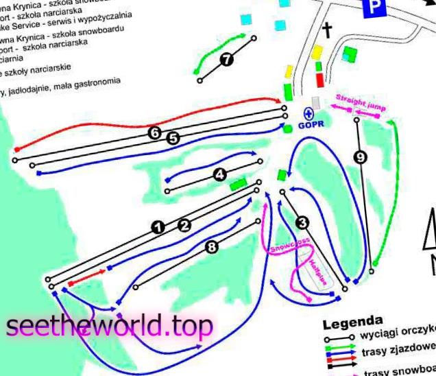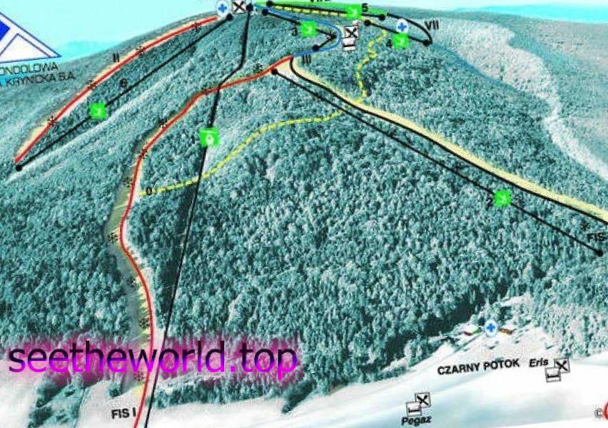 Сьогодні курорт Криниця об’єднує дві зони катання: Явожина (Jaworzyna) і Слотвіни / Чарні Потік (Stotwiny / Czarny Potok). Загальна протяжність трас різної складності – 28 км. З них Червоних трас – 21 протяжністю 5,5 км, синіх – 9 (20, 4 км), зелених – 2 (0,5 км) і дві чорні траси, довжиною 1,6 км. Всі траси освітлені. Більшість з них мають сертифікат FIS.